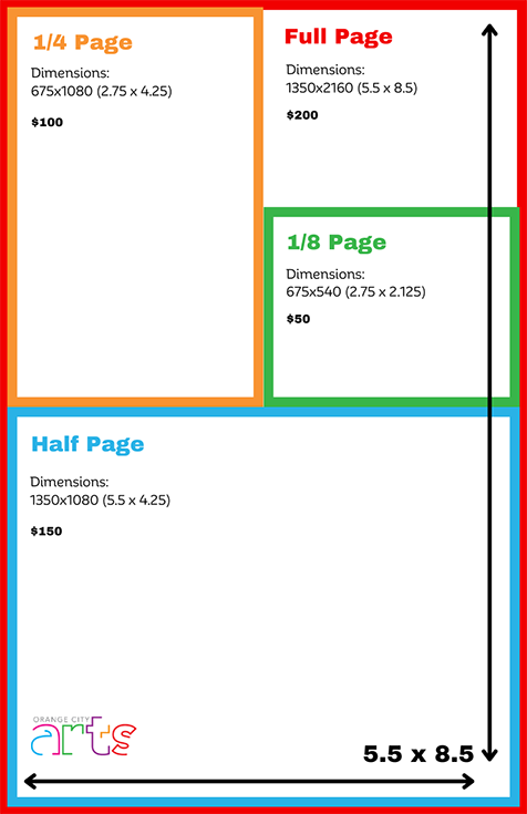 Artwork must be emailed to info@orangecityarts.org. Acceptable print quality files format: jpg or pdf (300 dpi).