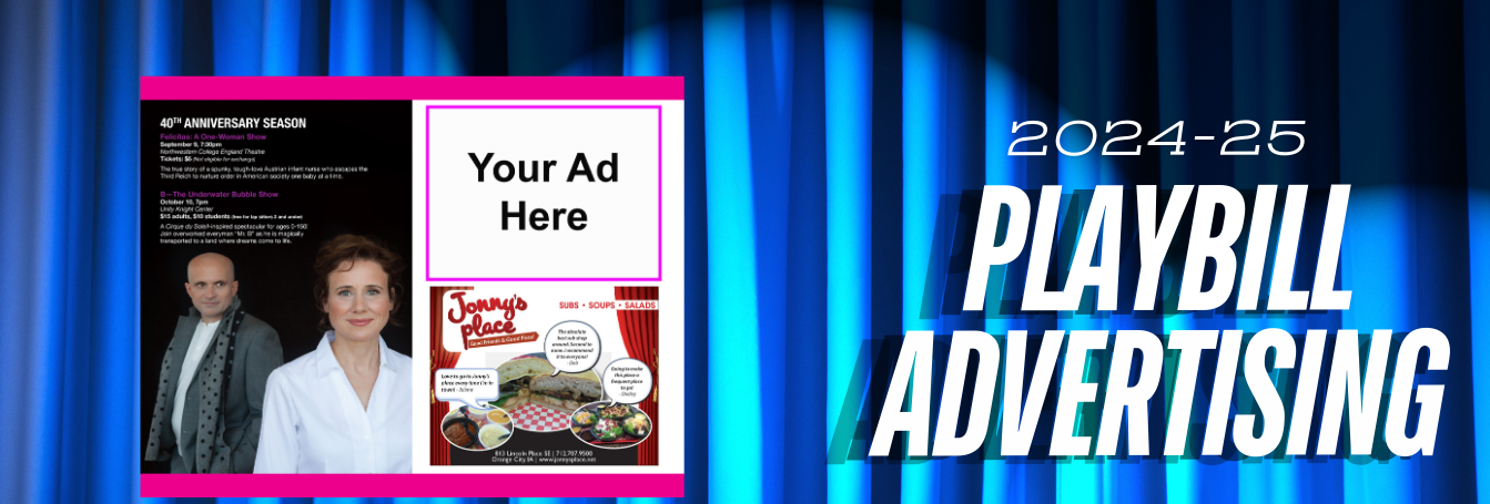 Playbill ads are a fantastic way to show your support for the arts and connect with our patrons. Our upcoming MainStage season will feature five playbills, with a total circulation of over 1,000 throughout the season.