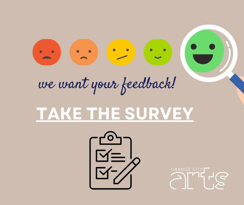 Orange City Arts would like to invite the public to complete our Online Survey over the next few months. This information will assist us in developing our future programs for the next season. The survey is anonymous; however, you can enter to win 2 Free Tickets to one of our upcoming MainStage events by leaving your contact information.